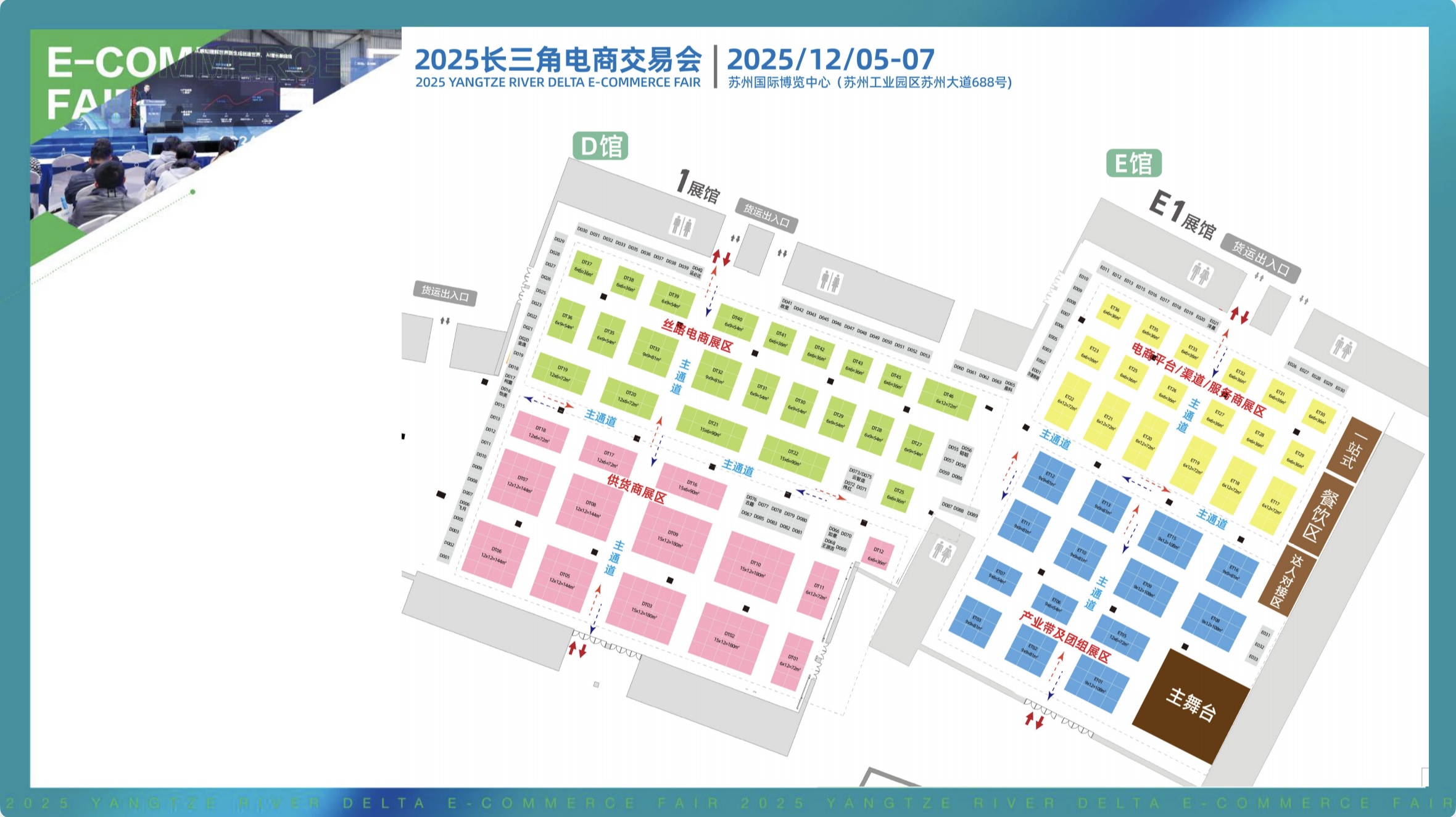 2025长三角电商交易会规划展览面积20000平方米,现场共设标准展位约650个,展区规划设计如下: